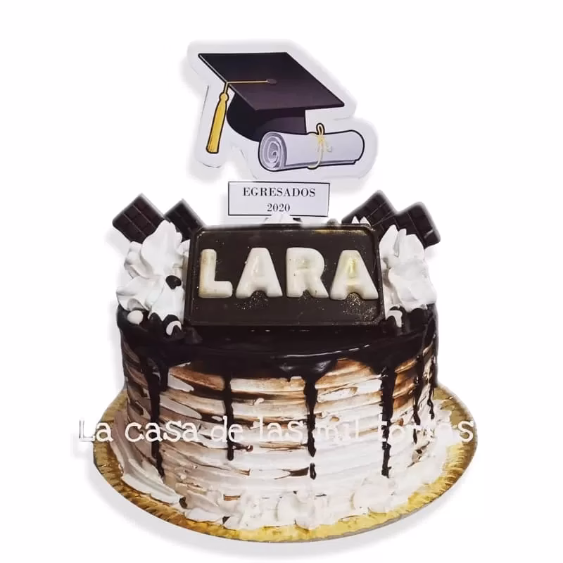 - Diseño Minimalista y Elegante: Para quienes prefieren la sobriedad. Una torta con cobertura lisa (generalmente buttercream o ganache), en colores neutros o los institucionales, decorada con un drip dorado o plateado y un topper con el nombre o la palabra "Egresado/a".