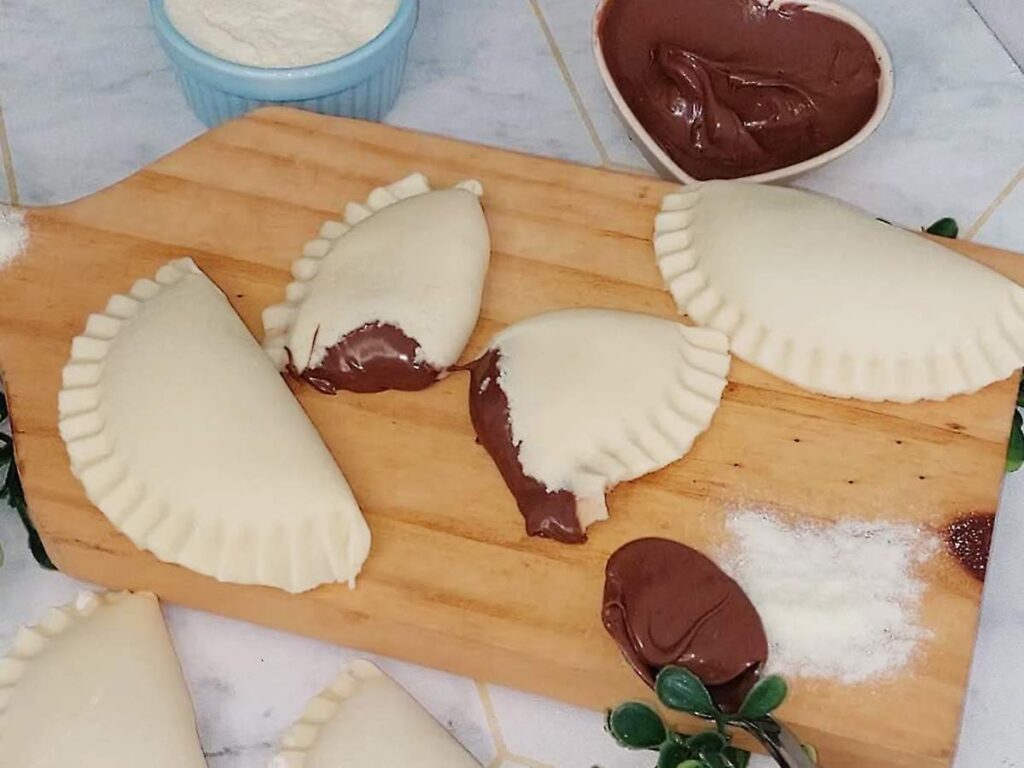 - Relleno y sellado: Coloca una pequeña cucharadita de Nutella en el centro de cada círculo de masa. ¡Cuidado de no excederte con el relleno para que no se salga al cerrar! Dobla el círculo por la mitad, formando una media luna. Con las puntas de los dedos, presiona suavemente los bordes para sellarlos. Para un acabado clásico y seguro, presiona todo el borde curvo con las puntas de un tenedor.