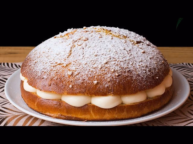 • La Crema Diplomática: El corazón de la tarta es su relleno. La crema diplomática, también conocida como crema madame, es una elaboración refinada que parte de una crema pastelera clásica, a la que se le añade gelatina para darle estructura y, lo más importante, nata montada muy fría. Esta adición transforma la densa crema pastelera en una mousse ligera, sedosa y aireada. Generalmente se aromatiza con vainilla natural, cuyo sabor profundo complementa a la perfección el azahar del brioche.
