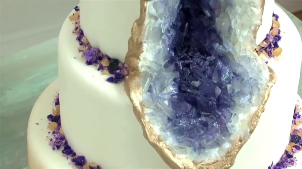 • Pasteles de Geoda: La tendencia que sigue enamorando a todos. Consiste en simular una roca abierta que revela un interior lleno de cristales de azúcar brillantes. Es elegante, lujoso y absolutamente espectacular.