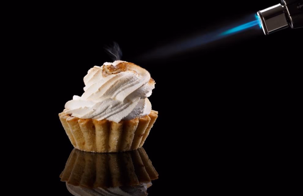 - Repostería Clásica: El uso estrella es caramelizar la capa de azúcar del crème brûlée o la crema catalana. También es perfecto para tostar los picos del merengue en una tarta de limón o un Baked Alaska, aportando un sabor y un aroma irresistibles.