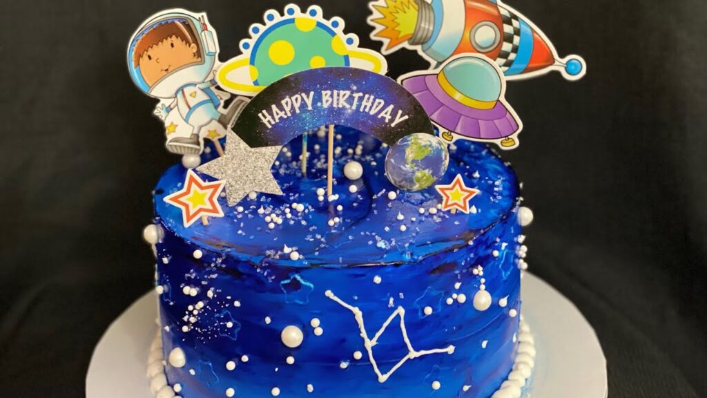 - Detalles finales: Purpurina comestible plateada o dorada, perlas de azúcar, y fondant de colores si deseas añadir planetas, cohetes o astronautas.