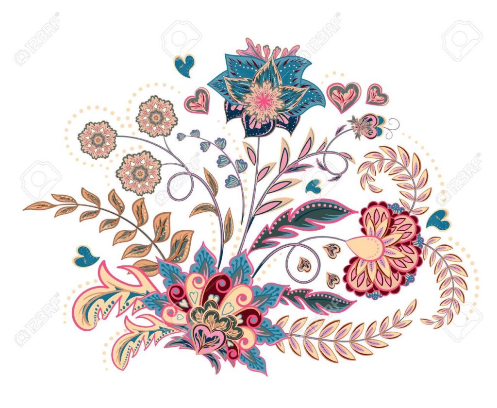 - Simetría y Repetición: Muchos diseños de bordado utilizan patrones simétricos o la repetición de motivos florales para crear guirnaldas, cenefas o medallones centrales.