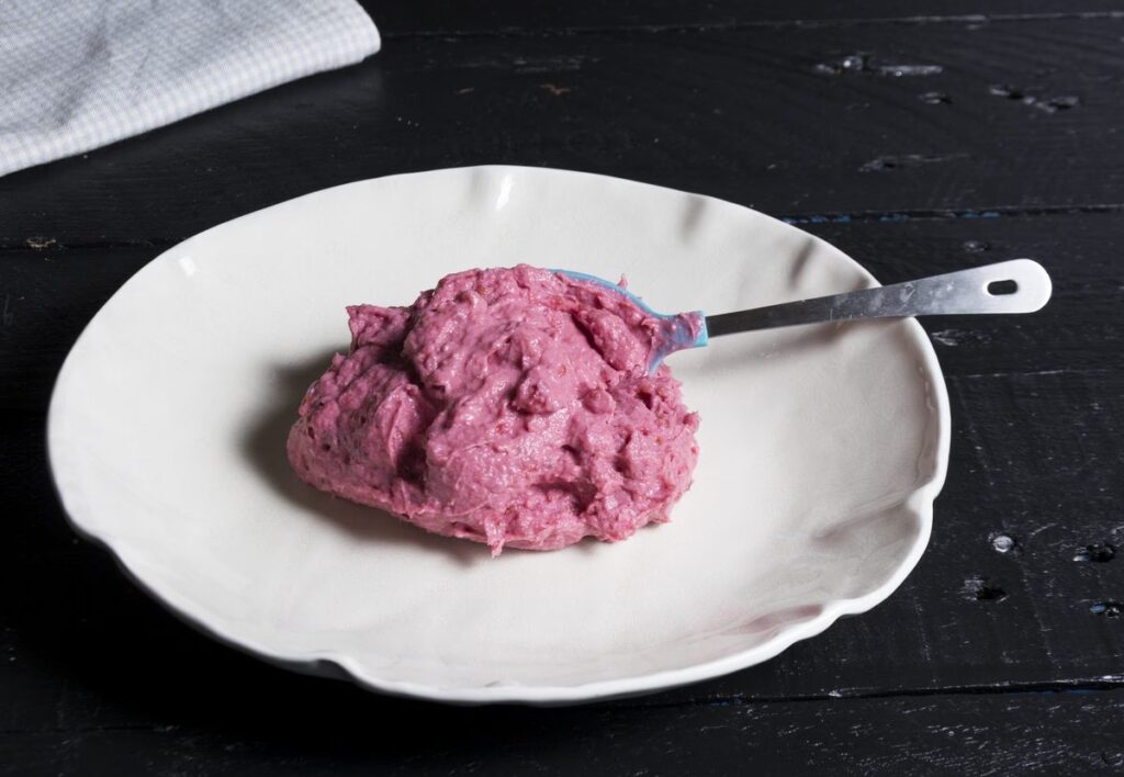 - Buttercream de frutos rojos: Una crema de mantequilla a la que se le incorpora una reducción o puré concentrado de frutos, ideal para cubrir y decorar tortas por su estabilidad.