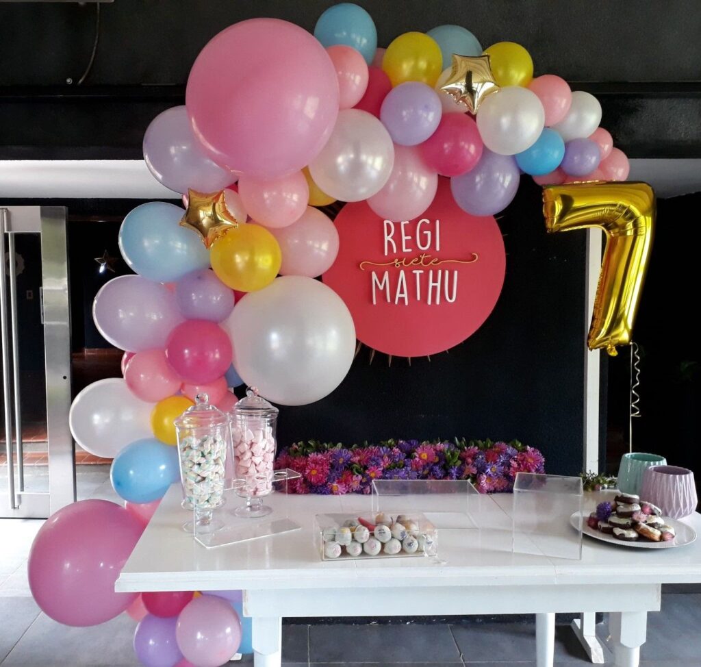 Las columnas, arcos y guirnaldas de globos son soluciones fantásticas para llevar la decoración de tu mesa dulce a un nivel superior. Su capacidad de personalización en colores, formas y diseños permite crear ambientes únicos y totalmente adaptados a la temática de tu celebración. Ya sea una fiesta infantil llena de color, una boda elegante o un evento corporativo, los globos ofrecen una forma sencilla, divertida y visualmente impactante de hacer que tu evento sea inolvidable. ¡Atrévete a jugar con las formas y los colores y convierte tu mesa dulce en el centro de todas las miradas!