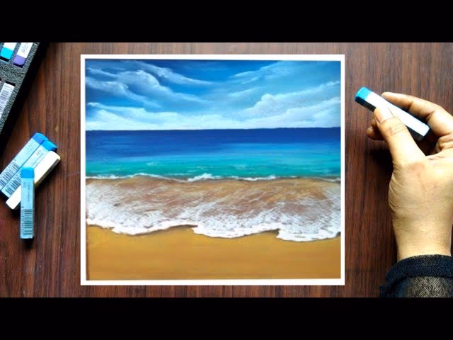 The final step in creating a pastel painting is to add a few touches of intensely light or dark color to pick out detail and help move the viewer's eye around the composition. This can include adding a horizon line using a very dark, almost Prussian blue.