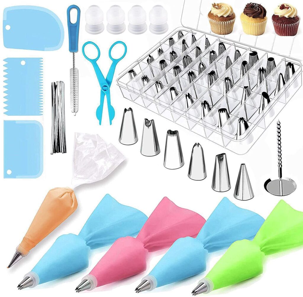 - Manga pastelera y set de boquillas: Para decoraciones precisas y profesionales. Invierte en mangas reutilizables y un buen surtido de boquillas de acero inoxidable.