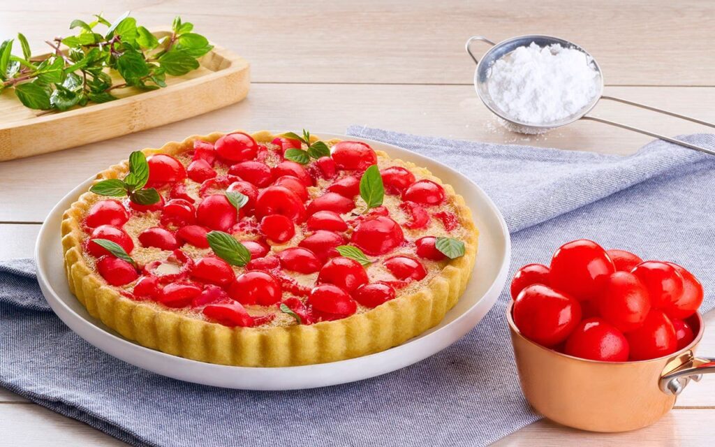 Aunque todas las opciones son válidas, la masa quebrada o Pâte Sablée ofrece una experiencia sensorial única. Su textura mantecosa y ligeramente dulce complementa a la perfección la acidez de las cerezas, creando una armonía de sabores y texturas que resulta simplemente sublime.