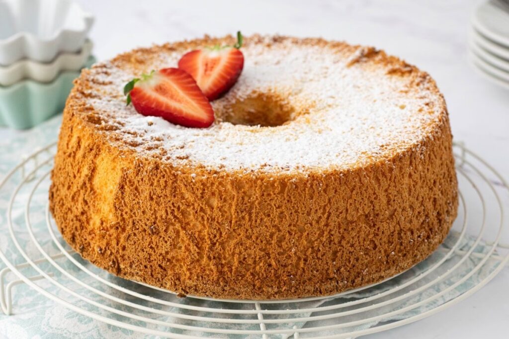 Este pastel no se hornea en un molde cualquiera. Requiere un molde de tubo o "chifón", alto y con un cono central. Este diseño tiene dos propósitos: permitir que el calor circule uniformemente y llegue al centro del pastel, y ofrecer una superficie adicional por la que la masa pueda "trepar" y crecer al máximo. Es fundamental nunca engrasar el molde, ya que la masa necesita adherirse a las paredes para poder subir. Una vez horneado, el pastel se enfría boca abajo, a menudo apoyando el tubo central sobre el cuello de una botella. Este peculiar método evita que la delicada estructura del pastel colapse por su propio peso mientras se enfría, garantizando esa textura esponjosa y celestial.