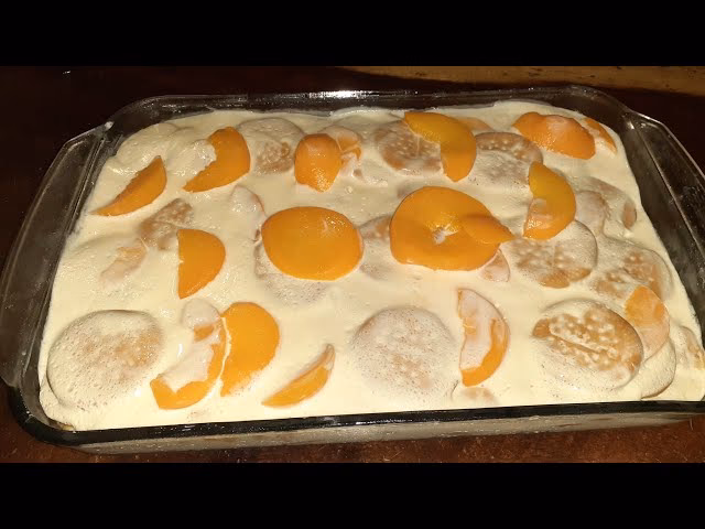 - La Decoración Final: Escurre los duraznos en almíbar y córtalos en gajos, cubos o como prefieras. Decora la superficie del pastel con los trozos de durazno. Puedes ser creativo y formar un patrón o simplemente distribuirlos de manera uniforme.