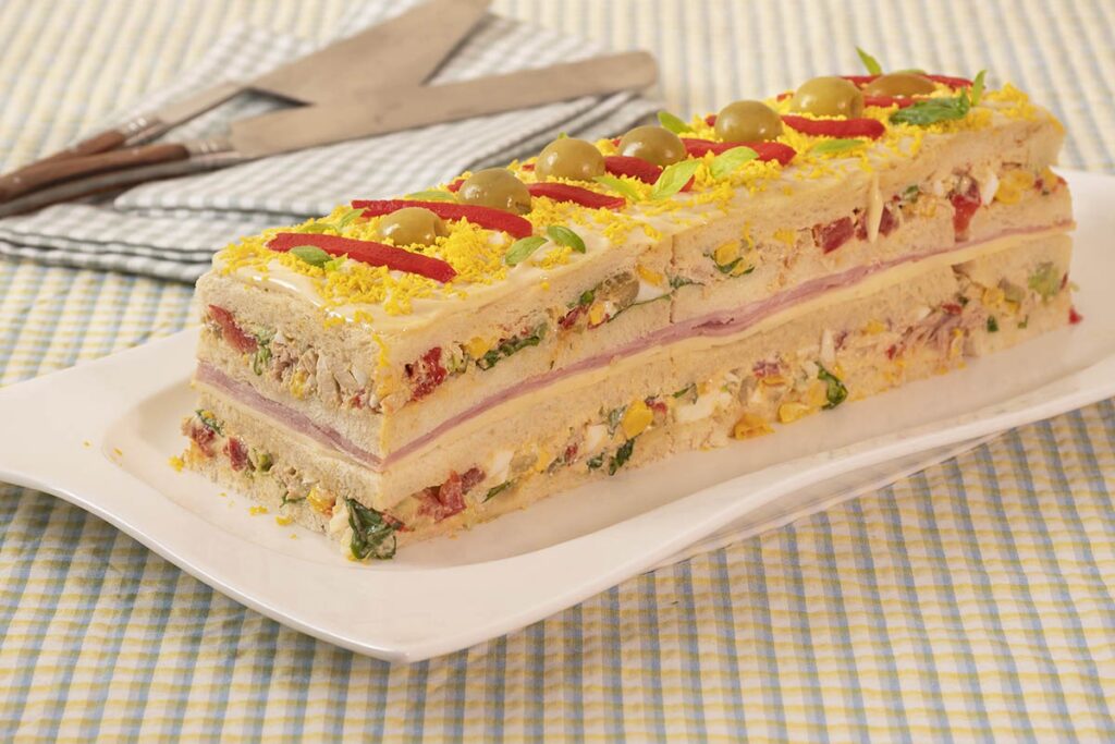 Imagina tu sándwich favorito, pero elevado a la enésima potencia. Un pastel frío de pan es esencialmente una tarta elaborada con capas de pan de molde sin corteza, que se alternan con diversos rellenos salados. La estructura se humedece ligeramente para que sea tierna y compacta, y finalmente se cubre o “glasea” con una mezcla cremosa, usualmente a base de mayonesa, queso crema o natas. Su gran ventaja es que se sirve frío, lo que lo hace ideal para preparar con antelación y disfrutar sin estrés en cualquier época del año, especialmente durante los meses más cálidos.