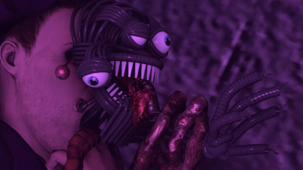 Un pastel inspirado en una figura así podría jugar con esa dualidad. Por fuera, podría ser un diseño alegre en tonos morados y amarillos, con la figura de un conejo sonriente. Pero al cortarlo, la sorpresa: un bizcocho de red velvet rojo intenso simula una hemorragia interna, y entre las capas se esconden engranajes de azúcar plateados y "cables" de regaliz, simbolizando la maquinaria oculta y el alma rota atrapada en su interior. Los detalles podrían incluir un glaseado que parece desgastado y viejo, como un traje abandonado durante décadas, y un sutil brillo metálico en los bordes. Este tipo de pastel no solo es un postre, es una pieza de narrativa que evoca una historia de terror sin decir una sola palabra.