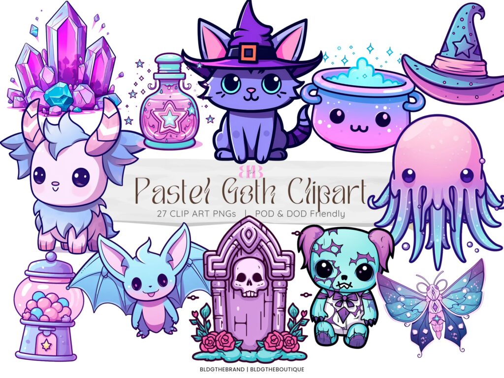 - Murciélagos y Gatos Negros: Animales asociados a la noche y lo gótico, que pueden ser diseñados de una forma "cute" para encajar en la estética.