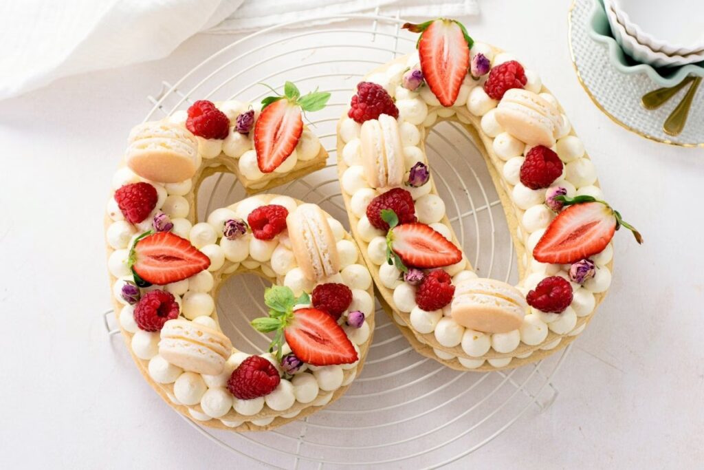 Una tarta de número, también conocida como "Number Cake" o "Cream Tart", es un pastel cuya forma representa uno o varios dígitos. Generalmente, se componen de dos o tres capas de una base firme, que puede ser un bizcocho denso o una galleta tipo sablé, intercaladas con generosas porciones de crema, frosting o mousse. Pero lo que realmente las define y las ha catapultado a la fama es su decoración: un estilo maximalista y cuidadosamente desordenado que convierte su superficie en un jardín comestible. Sobre la capa superior de crema se dispone una colorida y texturizada variedad de toppings como flores naturales, frutas frescas, merengues, bombones, chocolates y, por supuesto, los icónicos macarrones.