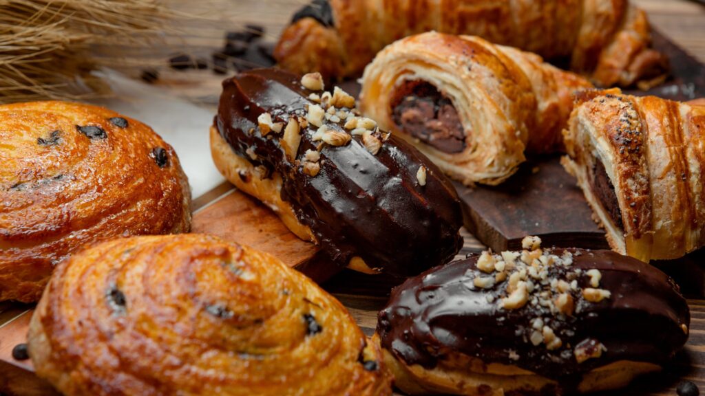 Existe una categoría híbrida fascinante: las masas hojaldradas-fermentadas. Como su nombre indica, combinan la técnica del laminado del hojaldre con la fermentación producida por la levadura. El resultado es una masa que posee tanto la estructura de capas del hojaldre como la miga tierna y esponjosa de un pan. Los ejemplos más icónicos de esta familia son el croissant, los chocolatines (o napolitanas) y la ensaimada, delicias que unen lo mejor de la panadería y la pastelería.