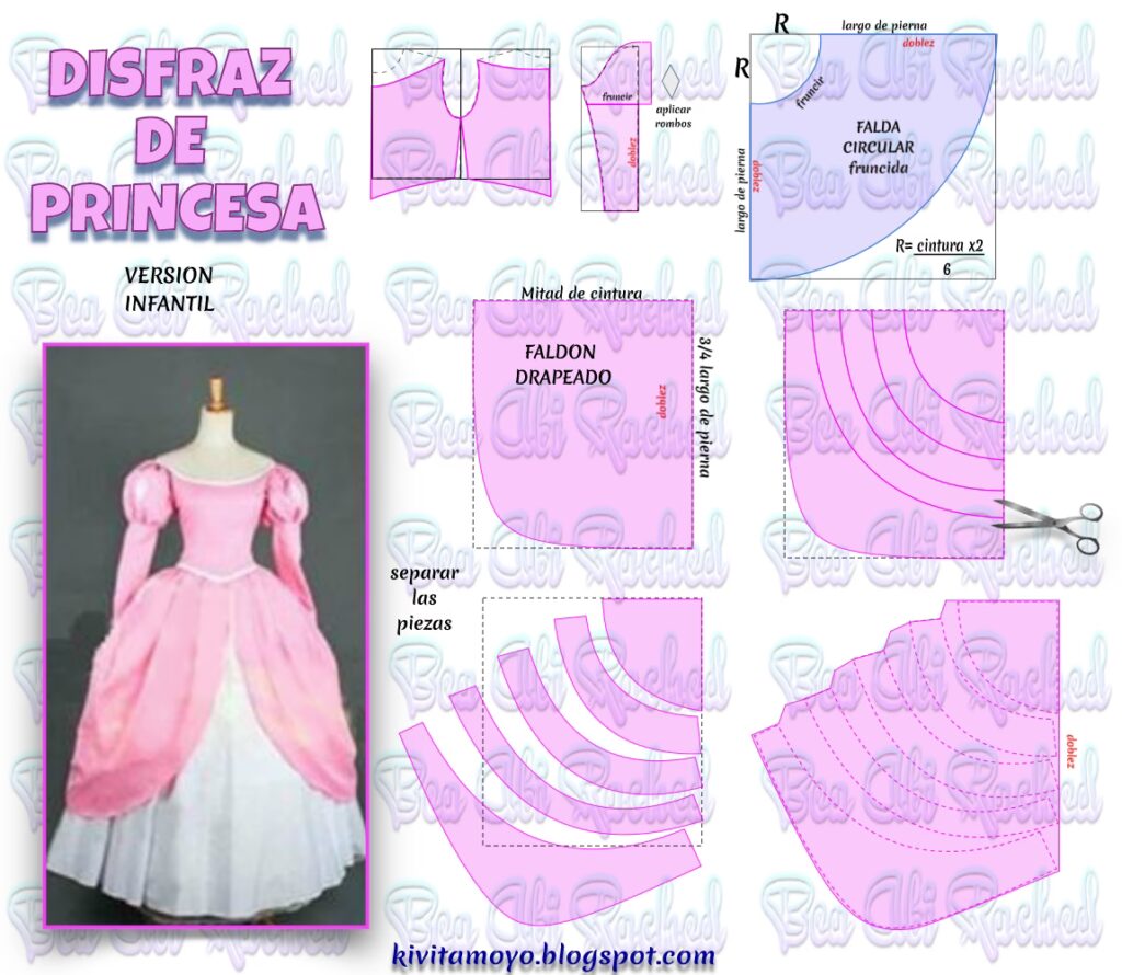 - Largo de Falda: Desde la cintura hasta donde quieras que llegue el bajo del vestido.