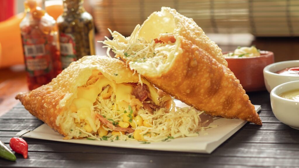 • Pollo con Catupiry: Pechuga de pollo deshebrada y sazonada, mezclada con queso Catupiry o un requesón cremoso de buena calidad.