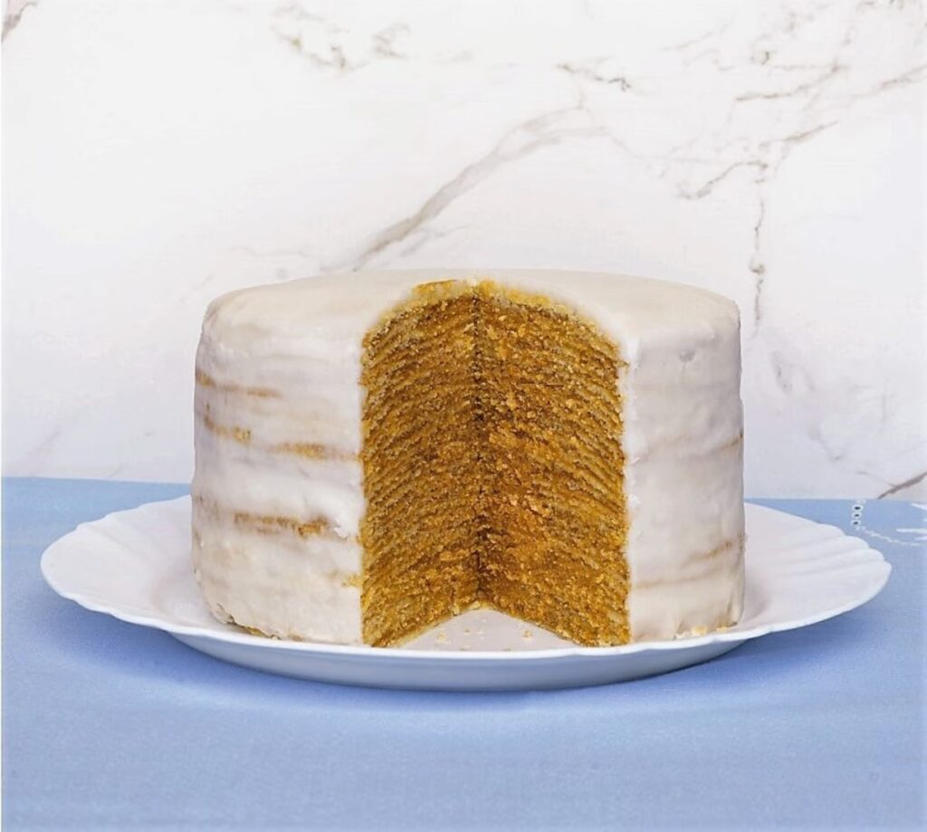 - El horneado de las capas: Aquí radica el mayor desafío. Se deben preparar moldes de aluminio (o simplemente papel de horno con un círculo dibujado). Sobre ellos, se extiende una finísima capa de masa, casi translúcida. Cada capa se hornea por separado a temperatura media-alta durante pocos minutos, solo hasta que los bordes se doren ligeramente. Se repite este proceso 28 veces. La paciencia es el ingrediente principal.