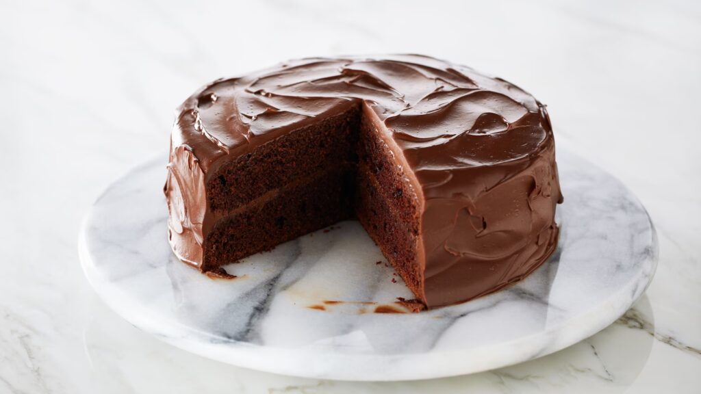 Su sabor intenso a chocolate combina maravillosamente con una variedad de coberturas. Una clásica es un frosting de queso crema, cuyo ligero toque ácido equilibra la riqueza del pastel. Un ganache de chocolate oscuro o una cobertura de merengue suizo de vainilla también son opciones excelentes que complementan sin opacar el sabor del bizcocho.