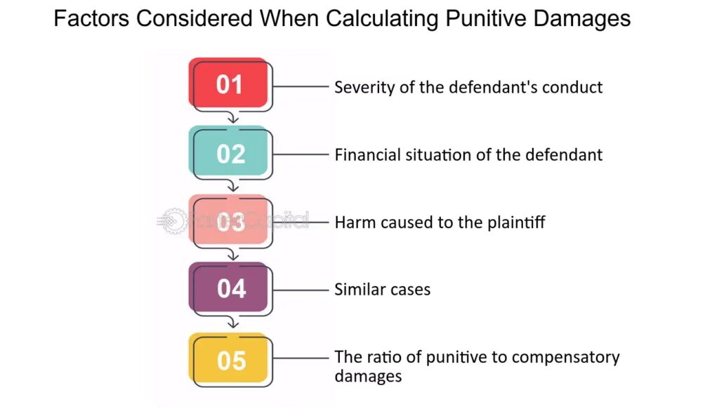 • Daños Punitivos: No buscan compensar a la víctima, sino castigar al demandado por una conducta particularmente grave, como fraude, un acto deliberado que causó daño o una negligencia grave. Su fin es disuadir al demandado y a otros de cometer actos similares en el futuro.