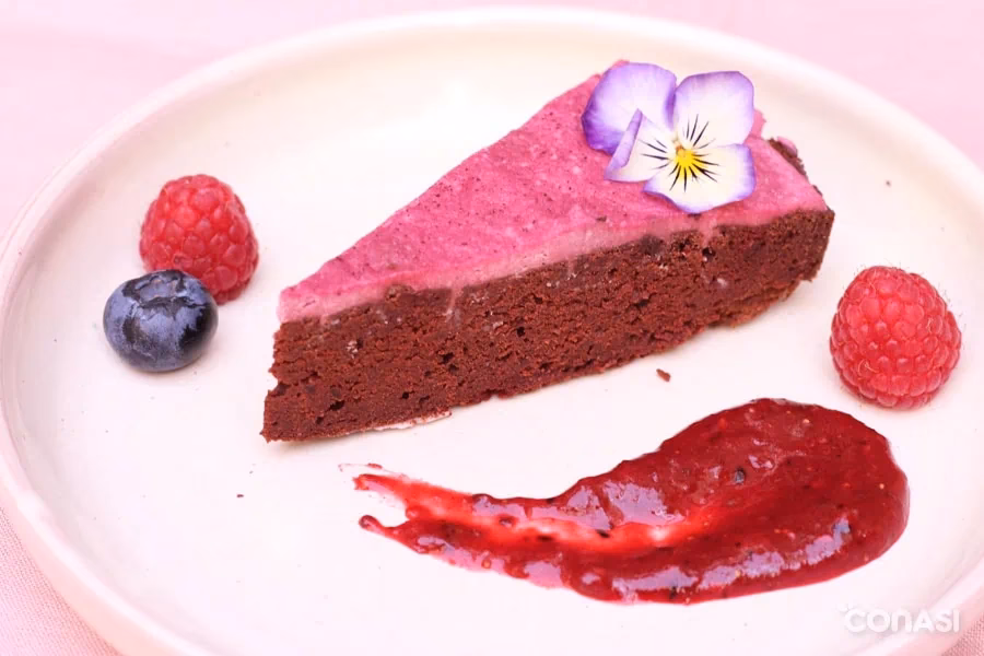 En ese caso será necesario aumentar el tiempo de cocción para que no quede crudo en su interior. La crema de chocolate del relleno y la cobertura se puede sustituir por chantilly o cualquier otra de vuestra preferencia. Servida con frutos rojos o cualquier otra fruta ligeramente ácida es una maravilla. El contraste de sabores es brutal.
