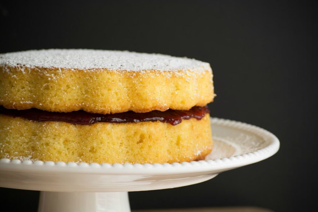 - Montaje final: Coloca una de las capas de bizcocho en tu plato de servir. Úntala generosamente con tu mermelada preferida. Coloca la segunda capa de bizcocho encima, presionando suavemente. Finalmente, usa un colador pequeño para espolvorear abundantemente con azúcar glas toda la superficie.