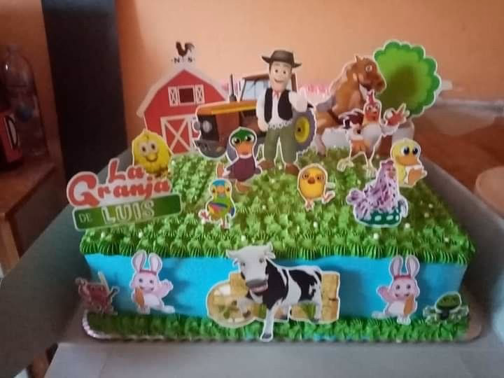 2. Figuras No Comestibles: En lugar de pagar por complejas figuras de azúcar, puedes comprar los muñecos de juguete oficiales de La Granja de Zenón y colocarlos sobre una torta con una decoración más sencilla. ¡Además, al niño le quedará el juguete como recuerdo!
